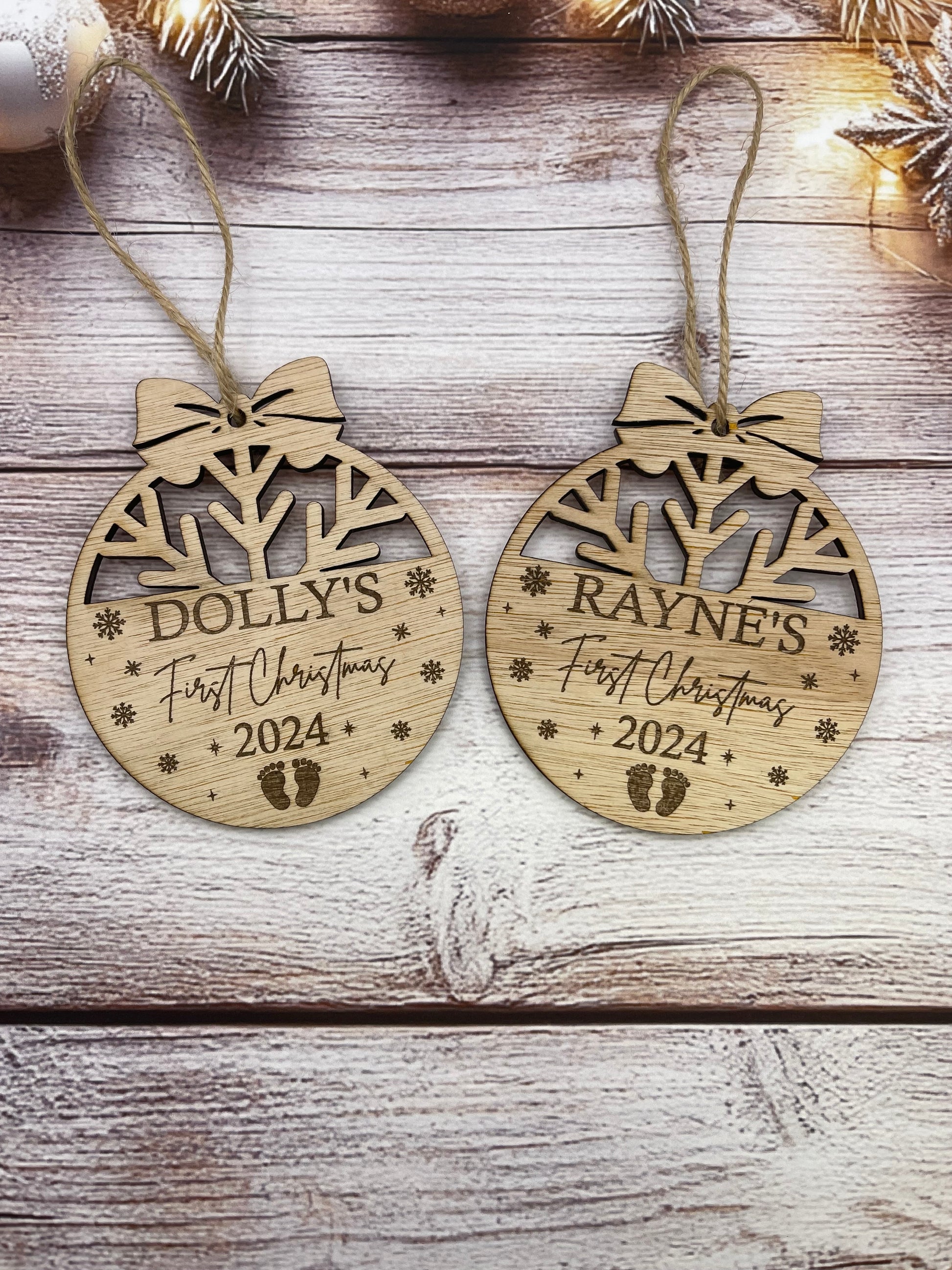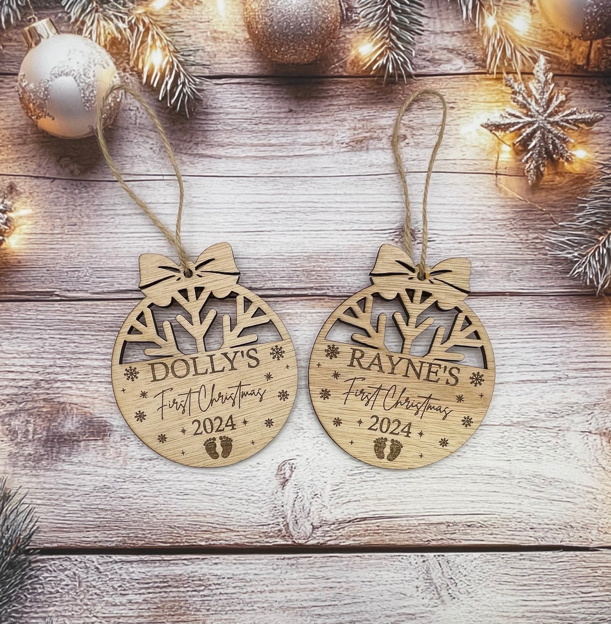 Baby's 1st Christmas Personalised Laser Cut and Engraved wood Tree Decoration